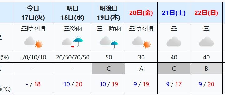 今週は天気が悪いっぽい.ようやっと雨が定期的に降りだした