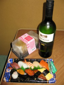 っていうか,すでに,お寿司&白ワイン(以外にも、いろんなおつまみを準備した(爆)