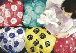 伊佐の若者グループ提案 ピンクや黄の水玉に花びら――。伊佐市では毎週決まった曜日になると、あちらこちらにカラフルな袋の山が現れる。街角を彩る現代アートのようなこの物体、実は市の指定ごみ袋だ。 きっかけは2008年11月の大口市と菱刈町の合併。新市誕生でごみ袋を作り直すと聞いた地元の若者グループ「ISART(イサート)」が、「どうせなら、どこにもないおしゃれなごみ袋を」と提案した。 燃えるごみ用は市花の桜の花びら、缶・瓶用には特産の焼酎の瓶、ペットボトル用のおにぎりを持つかわいい牛の絵は、同市で盛んな畜産と稲作を表現している。 (以下略) |