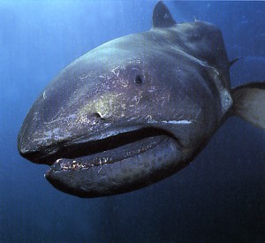 三重県尾鷲市九鬼町の沖合約500メートルの定置網に14日、メガマウスとみられる全長約5メートルの魚がかかった。 メガマウスはネズミザメ目のサメで、大きな口とオタマジャクシのような形の頭が特徴。確認例は国内で12例、県内では大紀町などで3例と少ないうえ、大半のケースは、巻き網などにかかって死んだ状態で発見されており、生態は不明な点が多い。 (以下略) |
