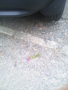車の足元には,怪しい木の小枝...