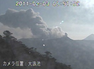 【火山噴火】新燃岳噴火 ライブカメラ~昨日からずっとモクモク中(11/02/03)