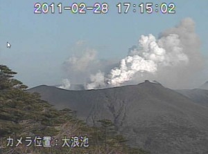 【新燃岳噴火】ライブカメラ 有色噴煙 モクモク中(11/02/28)