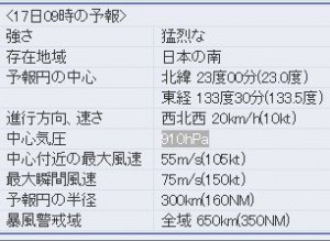 17日9時で,910ヘクトパスカル,風速55メータ,瞬間最大75メータ予想すか(((((((( ;゚Д゚))))))))ガクガクブルブルガタガタブルブル