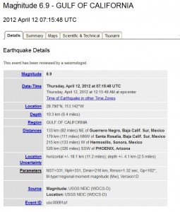 カリフォルニア湾で,マグニチュード6.9の地震