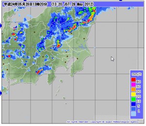 東京を始め,東日本の各地に竜巻注意報発令中(12/5/28)