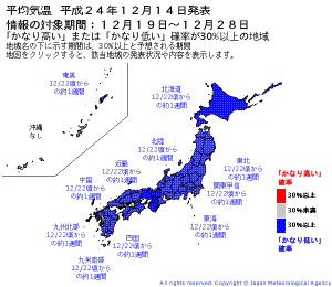 異常天候早期警戒情報 発令 19日~28日まで死ぬほど寒い!(12/12/14)