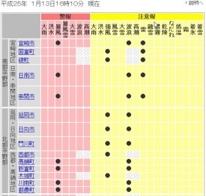 なんとっ!宮崎の南部平野部海岸側に,暴風警報発令となっ!