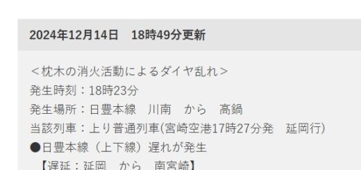 九州新幹線が新水俣―出水間で突然停車(14/7/15)
