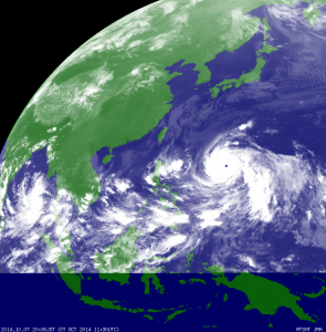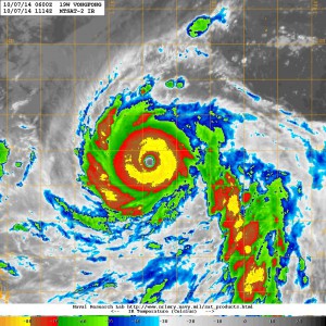【#台風 1419号】第5報 CI値7.2 909ヘクトパスカル 急速強化さらに猛発達中(14/10/7)