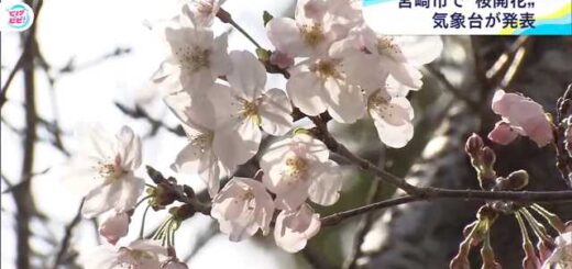 宮崎地方気象台は、22日午後、「宮崎市でサクラが開花した」と発表しました。 (以下略) |