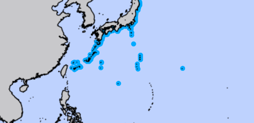 太平洋を渡ってきた津波は,日本列島沿岸で収束するから,波高アップするじゃろし