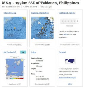 【#地震】フィリピン南方セレベス海M6.9(17/1/10)