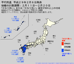 【#寒波】九州沖縄エリア 低温の異常天候早期警戒情報 発令じゃげな(17/2/6)