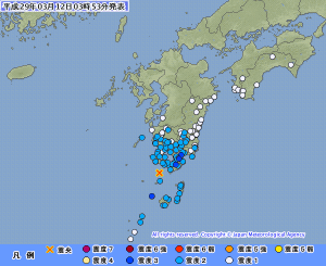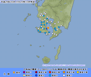 【#地震】鹿児島で2発 錦江湾と薩摩半島西方沖(17/3/12)