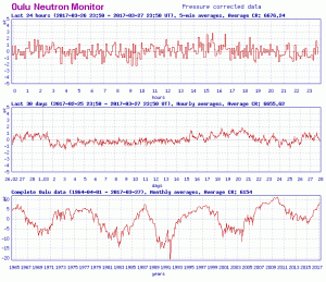 地球に侵入してくる銀河宇宙線量,急上昇中.っちゅうか,ここ20年ずっと上昇傾向じゃねぇ~か
