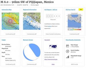 メキシコの太平洋側で大地震.マグニチュード8.2 深さ35キロ@USGS(8.0から修正されてる)
