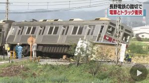| 長野電鉄で踏切事故 トラックと衝突 一部脱線