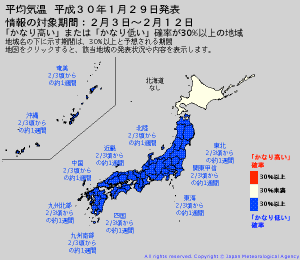 【#大寒波】猛烈低温の異常天候早期警戒情報 またまた発令(18/1/29)