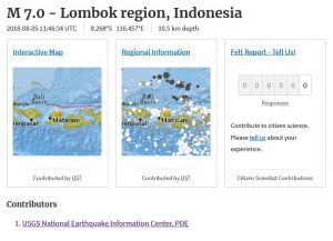 【#大地震】インドネシア:ロンボク島で再び大地震 M7.0(18/8/5)