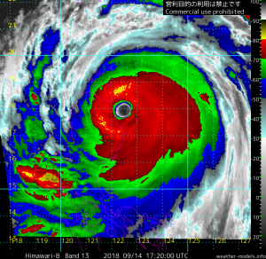 上陸直前の雲頂高度画像 真っ赤猛烈にヤバイ