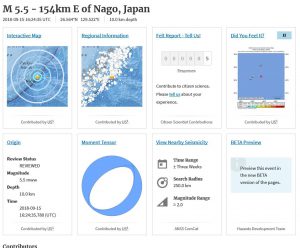 【#地震】沖縄本島近海でM5+級の群発地震(18/9/16)