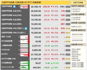 【#株価】日経平均 先物 19300円割れ(18/12/25)
