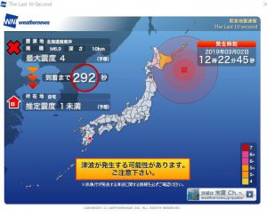 【#緊急地震速報】根室半島沖M6.9 深さ10キロ(19/3/2)