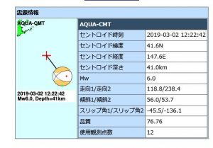 【#緊急地震速報】根室半島沖M6.2 深さ10キロ:太平洋プレート側の地震(19/3/2)