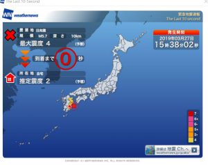 【#緊急地震速報】日向灘!がまたキタ━(゚∀゚)━!!(19/3/27)
