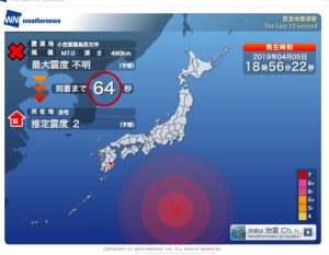 【#緊急地震速報】小笠原近海 M7.0 深さ490km(19/4/5)