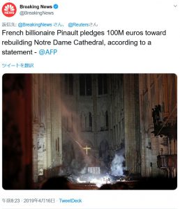 【#ノートルダム寺院】大火災で復旧のため,126億円の寄付者,現る