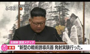 北朝鮮の国営メディアは、17日、キム・ジョンウン(金正恩)朝鮮労働党委員長の立ち会いのもと、新型の戦術誘導兵器の発射実験を行ったと伝えました。 (以下略) |
