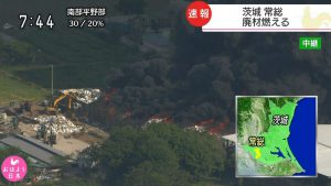 【#火事】茨城:常総市で廃材がすごい勢いで燃えてる(19/5/15)