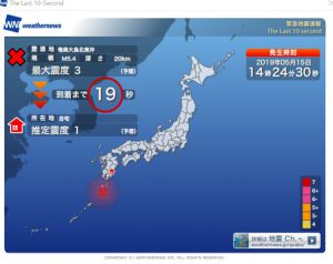 【#緊急地震速報】奄美大島北東沖 M5.4 深さ20km(19/5/15)