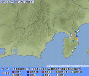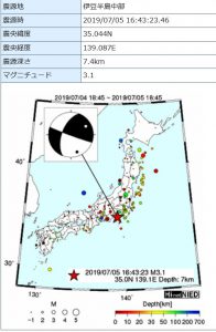 【#地震】伊豆半島東方沖 M3.4 深さ10km(19/7/5)