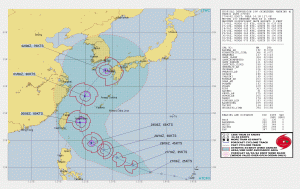 九州西岸~対馬海峡を瞬間最大風速100ノット前後で通過予想かねぇ?