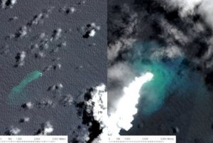 南太平洋の島国トンガ沖で海底火山の噴火により、島一つが沈み、その3倍の大きさの新たな島が出現した。地質学チームが7日、明らかにした。 (以下略) |