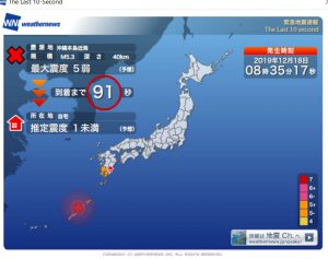 【#緊急地震速報】沖縄近海M5.3 5弱予想(19/12/18)