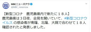 【#新型コロナウイルス】#鹿児島 で感染大爆発 +18人(20/7/3)