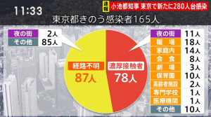 【#新型コロナウイルス】東京都の感染者,280人以上(20/7/16)