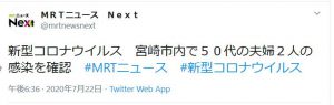 【#新型コロナウイルス】#宮崎コロナ 宮崎市内で50代夫婦感染(20/7/22)
