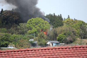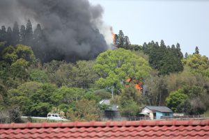 どこじゃろかと,周囲を見渡したら,清武城址のあたりで火柱!これはヤバい