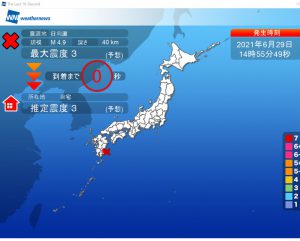 震度3の緊急地震速報