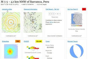 【#巨大地震】ペルー直下でM7.5(21/11/18)