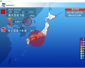 【#緊急地震速報】紀伊水道 M5.4 震度5弱(21/12/3)
