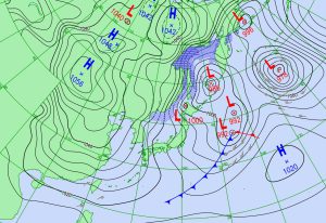 25日21時 予想天気図も等圧線混み混みで