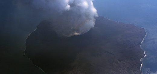 島全体から,湯気なのか噴煙なのか,立ち上がってるヤバス