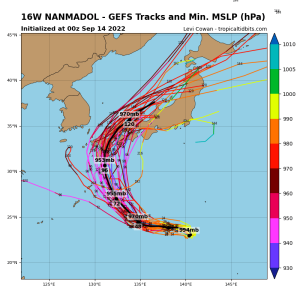 【#台風】台風14号:鹿児島宮崎 直撃予想へ(22/9/14)