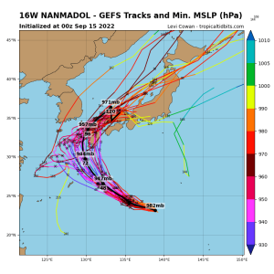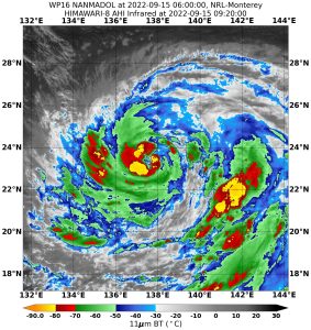 【#台風】台風14号:940hPaまで下がる予想も出てるぞー オイラのワクチン接種は実施されるのかっ!?(22/9/15)